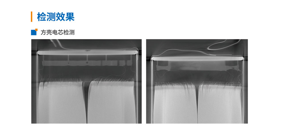 利用X射線的透視能力,從不同角度對電芯角位進行透射,并在平板探測器上成像,拍攝一系列不同角度的二維透視圖像,再通過三維重構軟件合成為高分辨率三維圖像數據,即可在任意位置、任意方向進行虛擬剖切觀測,然后結合智能化軟件算法在圖像上對電芯的OH進行分析判斷,主要用于新能源行業的動力疊片電池的OH檢測與質量控制。